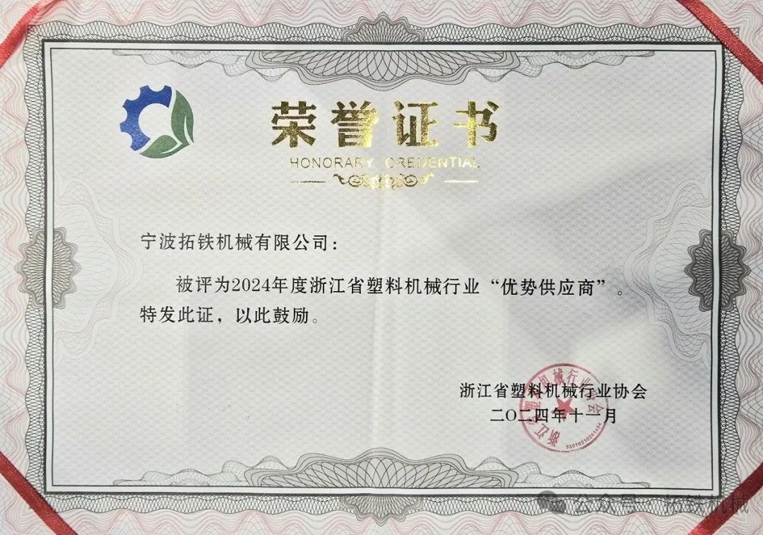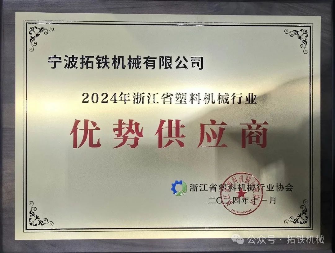浙江省塑料机械行业协会于2024年11月在深圳召开一届二次会员代表大会暨二次理事会议,届时公布了“优势供应商”评选结果,并对获奖单位颁发荣誉奖牌和证书。